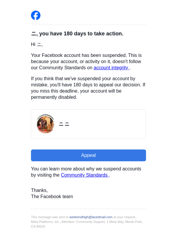 Action needed on your Facebook account