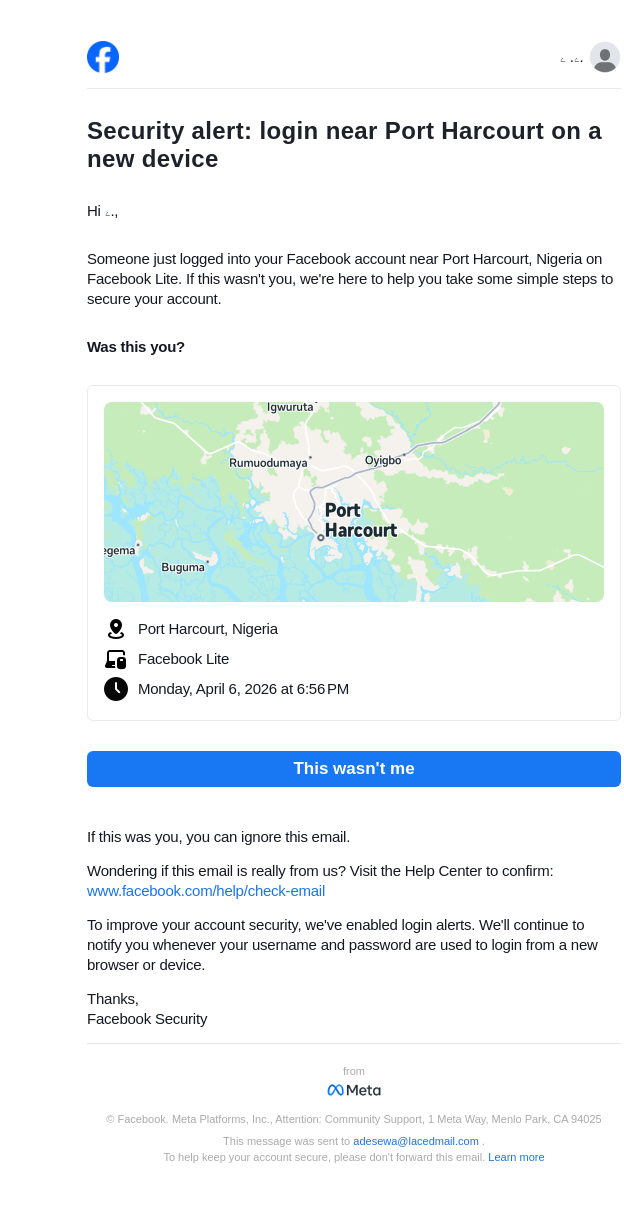 Did you just log in near Port Harcourt on a new device?