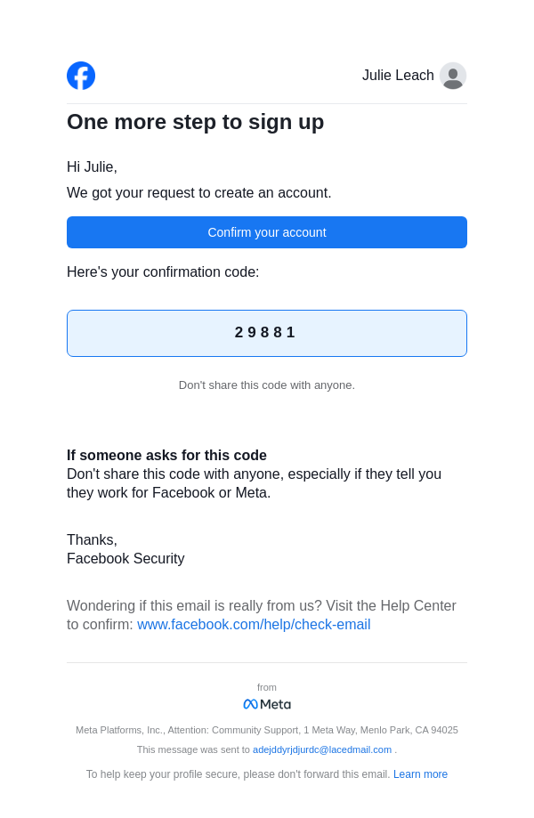 To: adejddyrjdjurdc@lacedmail.com From: registration@facebookmail.com Received: 2026-04-07 18:35:39.995946
