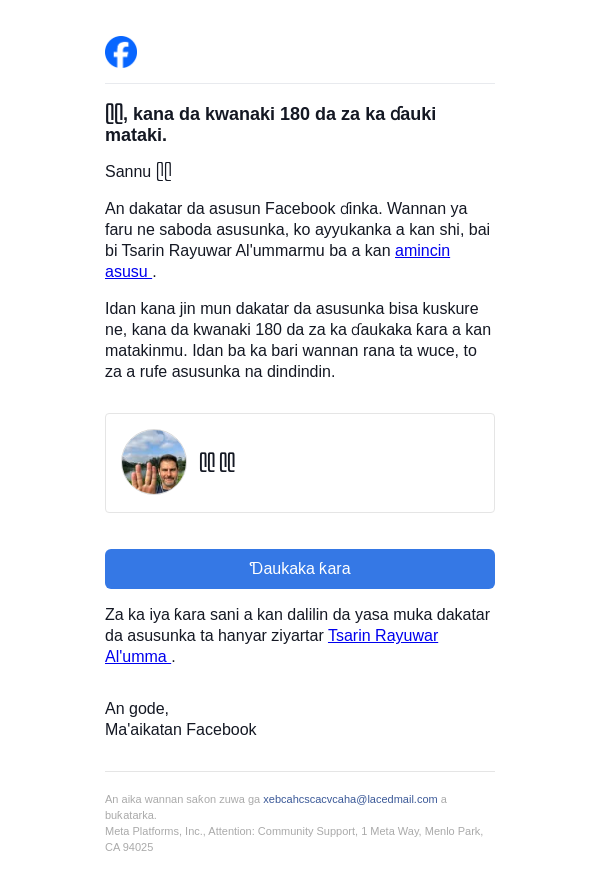 To: xebcahcscacvcaha@lacedmail.com From: security@facebookmail.com Received: 2026-04-09 11:15:00.685789