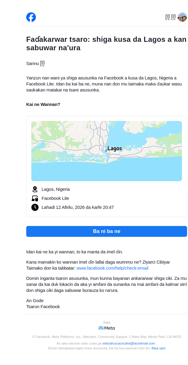 To: xebcahcscacvcaha@lacedmail.com From: security@facebookmail.com Received: 2026-04-12 20:47:44.073810