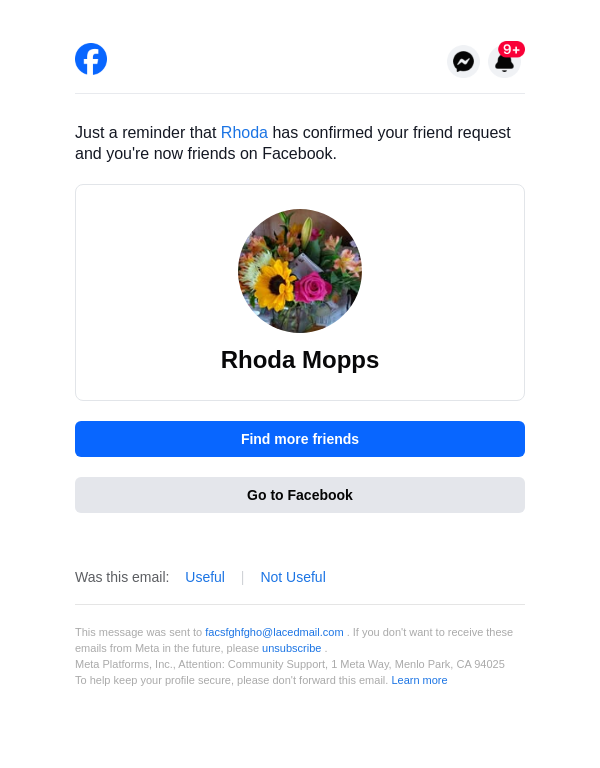 From: friends@facebookmail.com