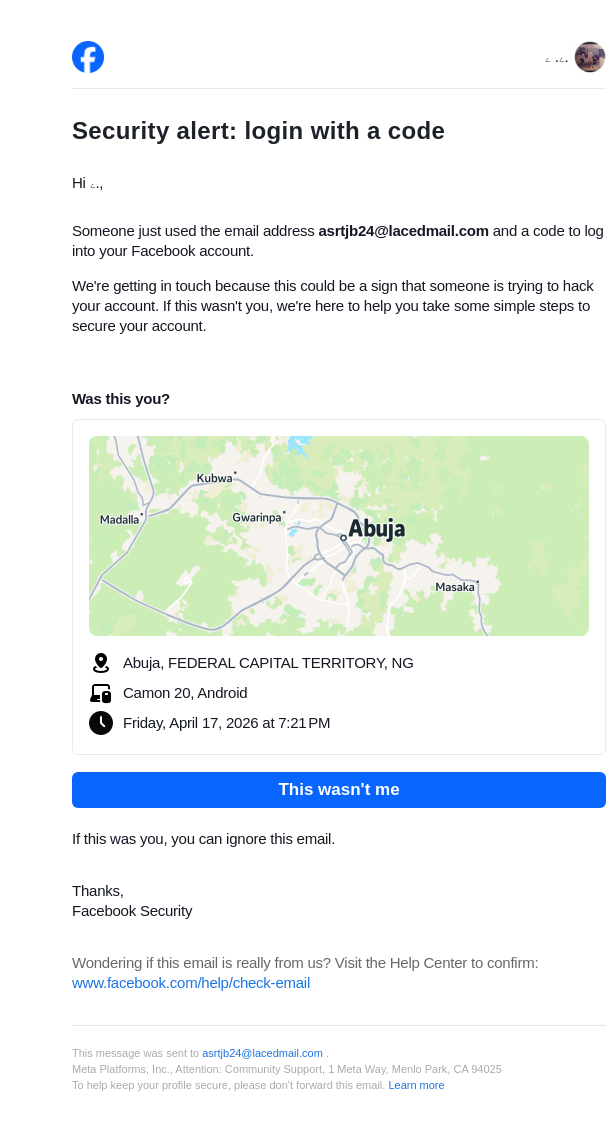 From: security@facebookmail.com
