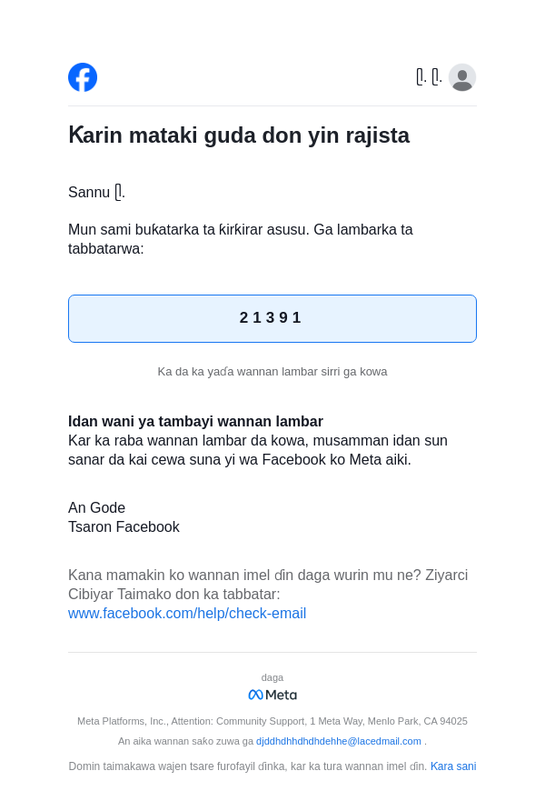 To: djddhdhhdhdhdehhe@lacedmail.com From: registration@facebookmail.com Received: 2026-04-17 22:25:20.510324