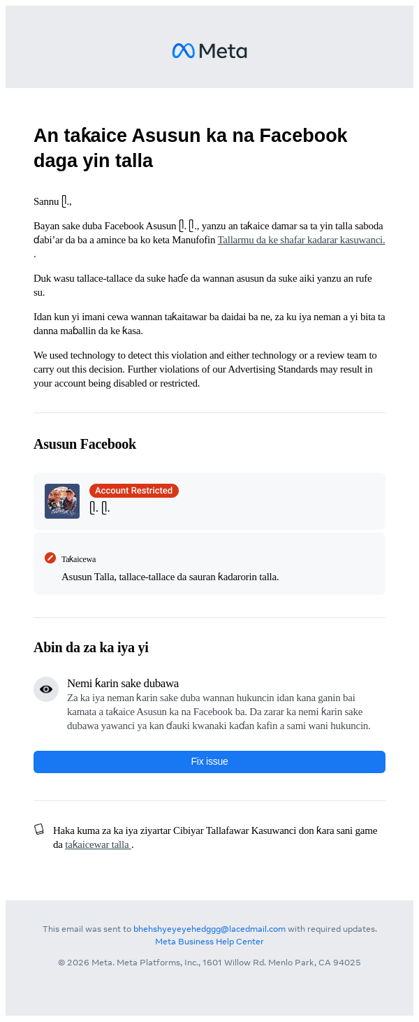 To: bhehshyeyeyehedggg@lacedmail.com From: noreply@business.facebook.com Received: 2026-04-18 00:11:28.230296