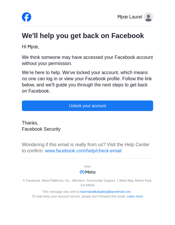 To: kanmalnalkakjakwj@lacedmail.com From: security@facebookmail.com Received: 2026-04-18 10:58:07.794926