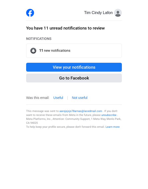 To: aarojsjsjs78arnas@lacedmail.com From: reminders@facebookmail.com Received: 2026-04-18 20:39:25.885625