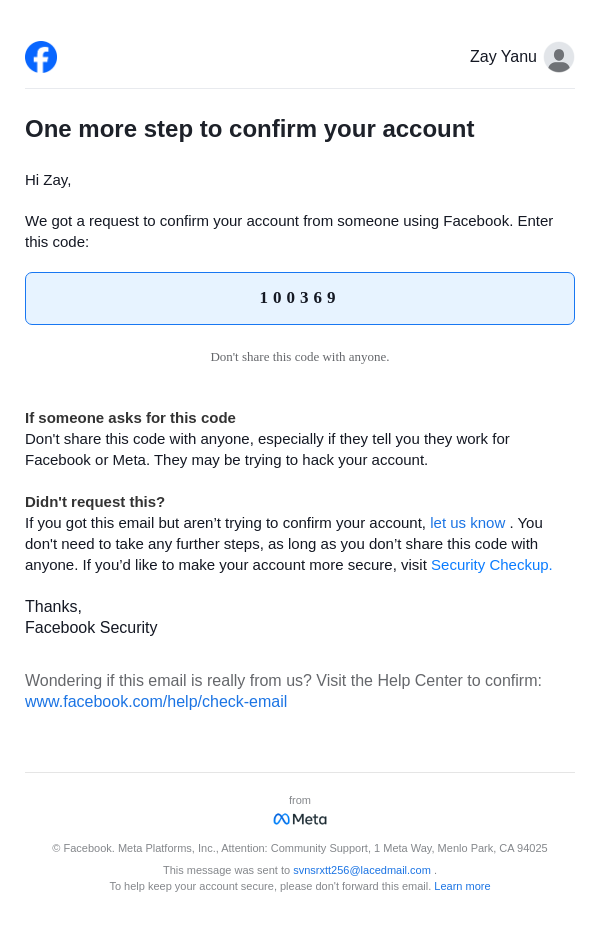 From: security@facebookmail.com