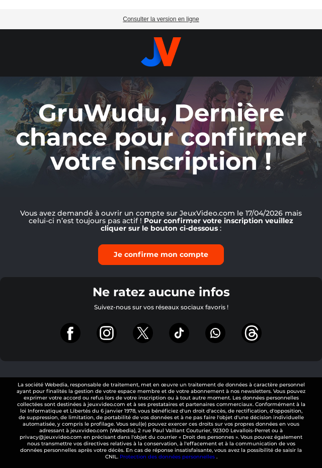 To: dhagagagavzgg@lacedmail.com From: contact@newsletters.jeuxvideo.com Received: 2026-04-19 23:20:11.841233