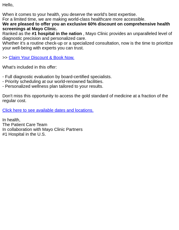 Priority Access: Your Health Assessment at Mayo Clinic (60% Off)