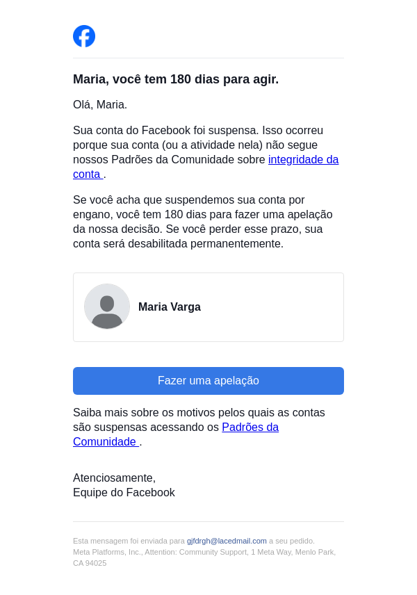 Ação necessária na sua conta do Facebook