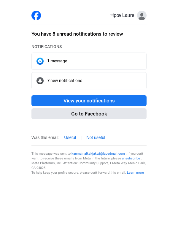 To: kanmalnalkakjakwj@lacedmail.com From: reminders@facebookmail.com Received: 2026-04-27 10:41:14.727159