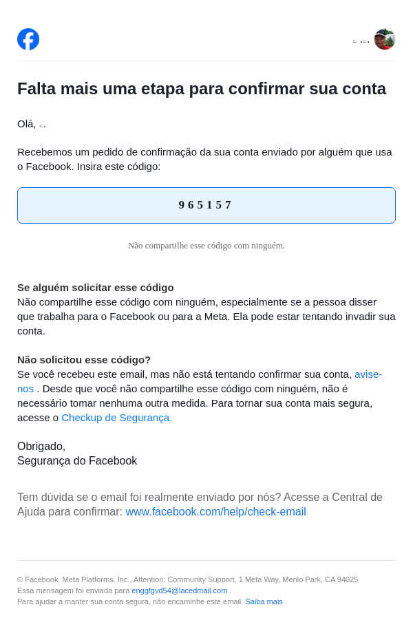 Seu código do Facebook é 965157